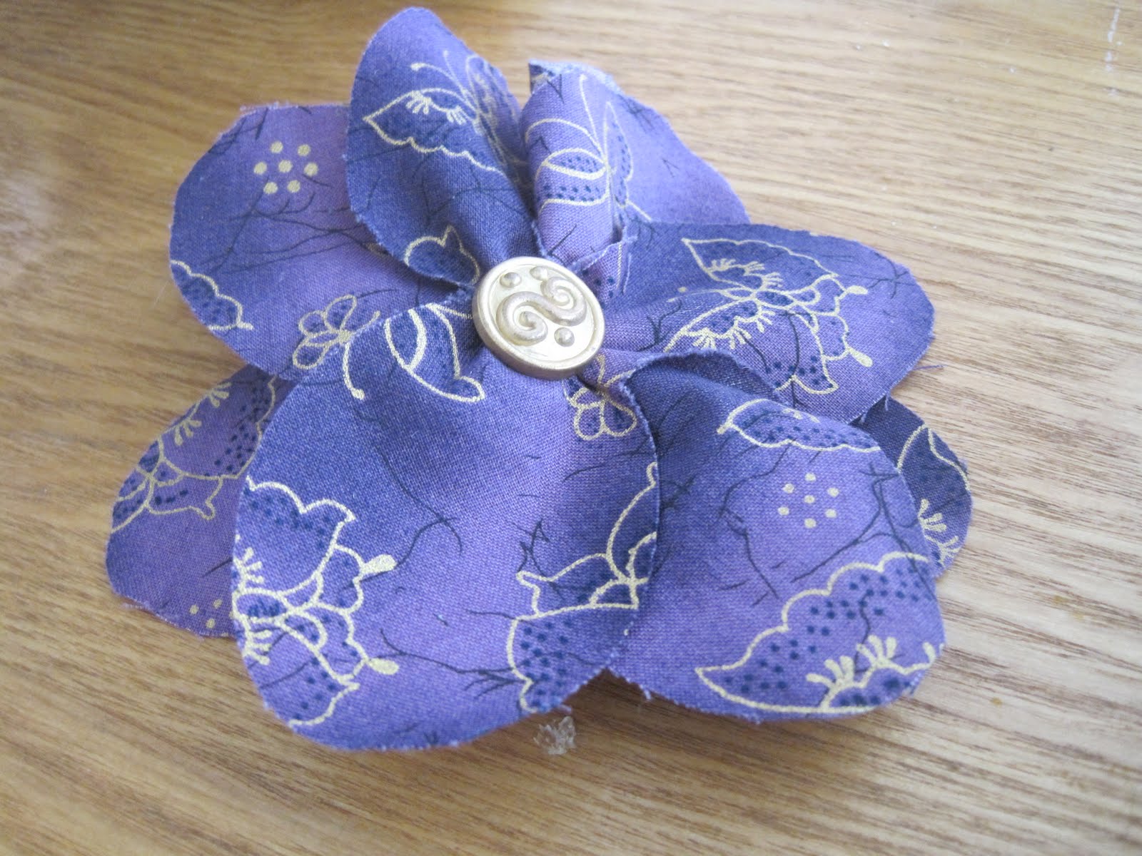 I made this for a friend. I really need to get over to the post office to send it to her. The main reason I'm posting about it is that I think it's really interesting how different the color looks depending on whether there's white in the frame. I guess I have always had a vague notion that cameras automatically adjust color tone based on neutrals in the picture, but I had never seen it in action like this. I watched the display color shift as I moved the salt shaker in and out of the frame. It was pretty fun, actually. Anyway, the color on the right is the more accurate one. I used a fun button from my mom's stash for the center, and I sewed it to the pin before gathering the center circle, which seems to work pretty well for buttons that have a hole on the back instead of multiple holes through the whole button.